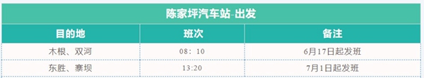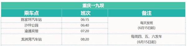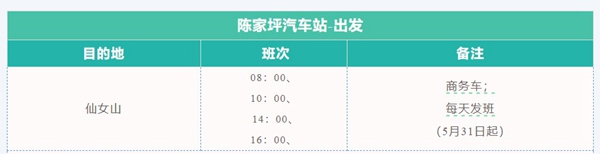 5月31日起,新增仙女山避暑直通車線路,其班次詳情如下: