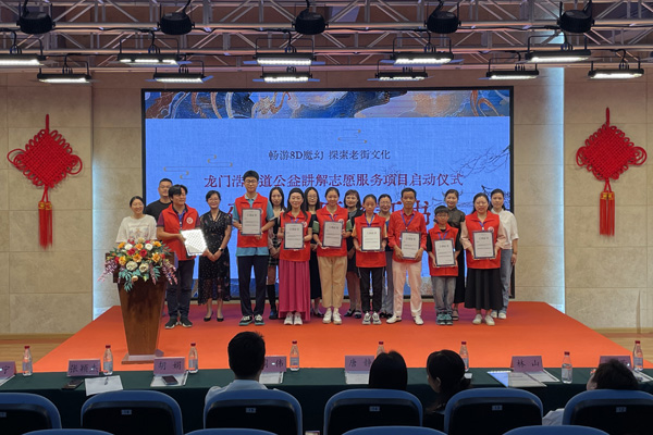 為公益講解員及導師們頒發上崗證書。龍門浩街道供圖