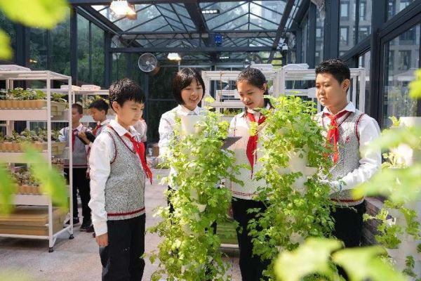 師生在學校智慧大棚開展科學教育。渝中區人和街小學校供圖