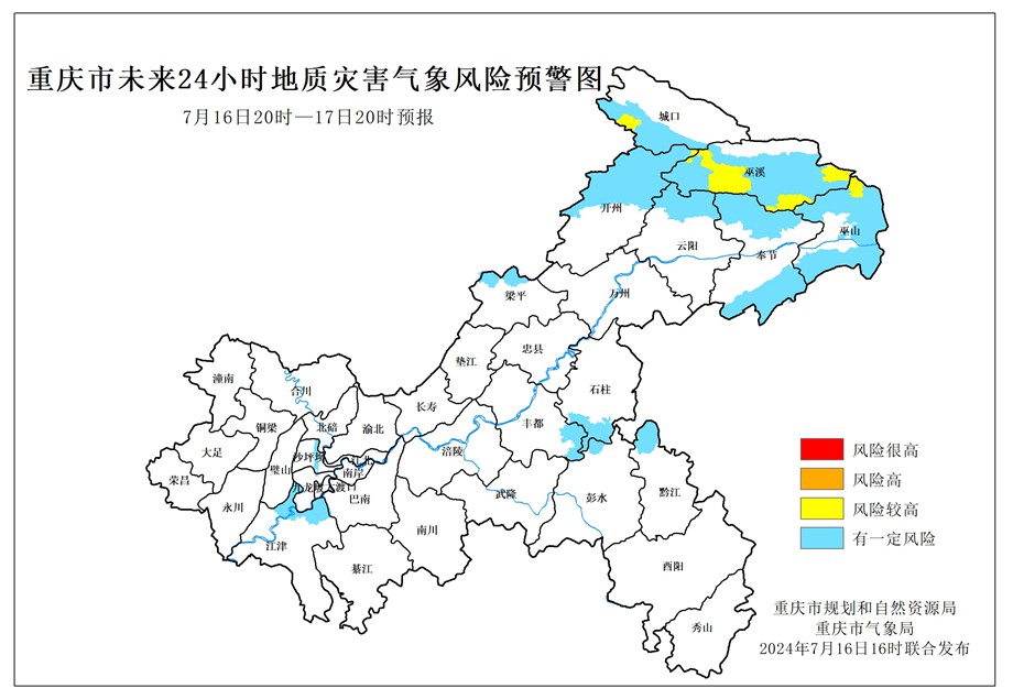 7月16日16時,重慶市規劃和自然資源局、重慶市氣象局聯合發布全市地質災害氣象風險預警。