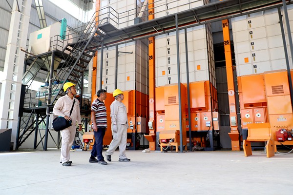 當天,車間里糧食烘干機組正轟隆隆地運轉,經過一系列循環干燥、冷卻后的稻谷從卸糧口傾瀉而出,該公司“紅巖電管家”和工人們忙著打包封袋儲存。