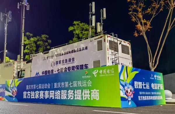 應急通信保障也是本次賽事的亮點之一。為防止意外事件干擾賽事順利進行,重慶電信累計組織了7次應急演練和12次應急保障,出動應急通信車和應急方艙,并投入了相關技術骨干參與網絡支持,這確保了在高峰通信需求下,賽事現場的網絡始終保持順暢運行。