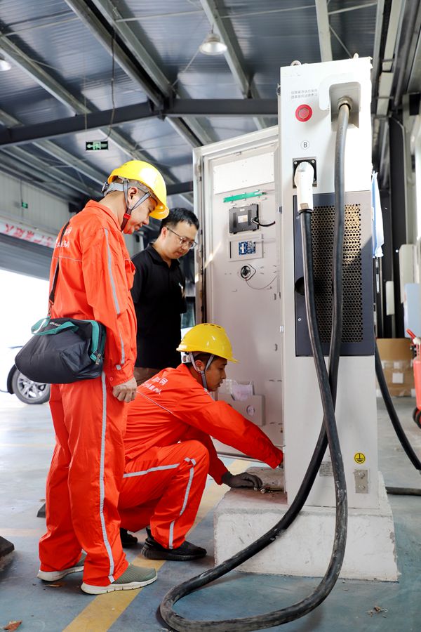 當天,國網重慶永川供電公司電力工作人員對充電樁機體外觀、接地、通訊模塊、充電模塊、消防設施等進行逐一檢查。向基地工作人員進行安全知識、應急處理等安全運營現場培訓。同時結合迎峰度夏、節假日和該基地實際用電情況,對該基地下階段用電作出預估,并征求客戶需求,有針對性地調整供電服務方案,保障該基地可靠用電。