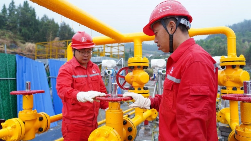涪陵頁巖氣田員工檢查焦頁31號集氣站采氣裝置。涪陵頁巖氣公司供圖