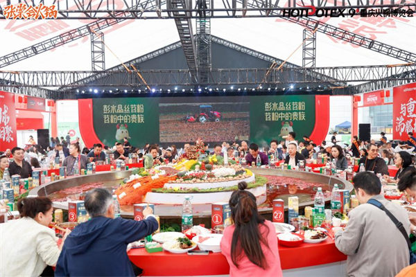 在重慶火鍋博覽會期間,備受矚目的“重慶火鍋天下宴”設置了一個可容納348人同時涮燙的巨型火鍋區,成為展會的亮點之一。該區域內的特制大火鍋一次可供60人同燙同涮,此外還設置了36桌火鍋宴席,由2024年榮獲重慶火鍋超級ONE品牌稱號的秦媽、珮姐和家一加3個火鍋品牌共同運營。多個品牌的快閃店也加入其中,以正宗的重慶風味款待來自各地的觀眾。