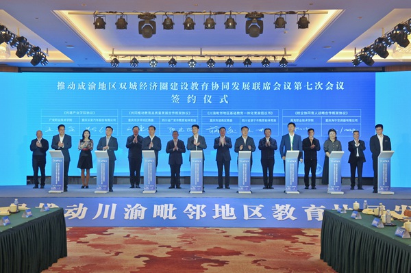 會上,四川省廣安市教育和體育局與重慶市沙坪壩區教委、廣安職業技術學院與重慶長安汽車股份有限公司、南充職業技術學院與重慶海爾空調器有限公司、川渝毗鄰地區教育主管部門代表分別簽訂了合作協議。(新重慶-重慶日報原創記者 云鈺)
