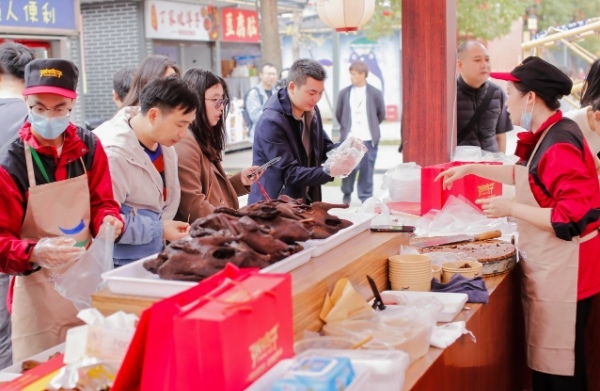 游客穿行其中,古雅的建筑與林立的鋪面相映成趣,街市人流如織,琳瑯滿目的美食目不暇接,新潮集市與古韻古風相互碰撞,演繹著“巴渝大地尚滋味”的重慶美食新風尚。