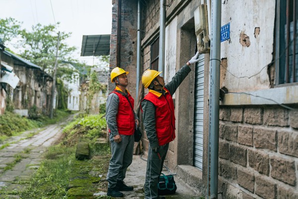 電力員工開展茶店老街用電安全檢查。國網重慶永川供電公司供圖