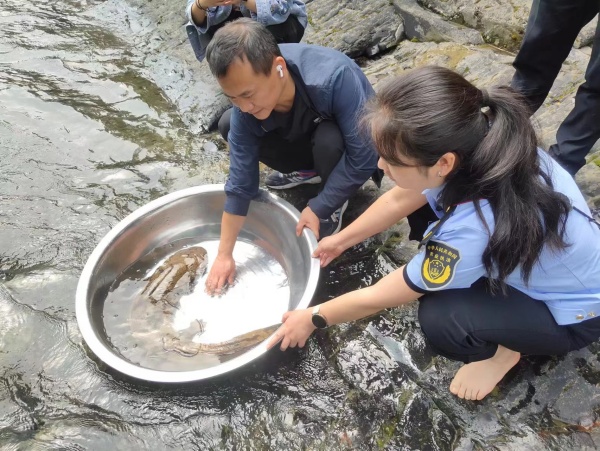 放生野生娃娃魚。城口縣水利局供圖