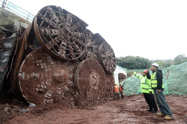 重慶花溝片區路網項目1號路下穿道矩形頂管貫通。中建六局供圖