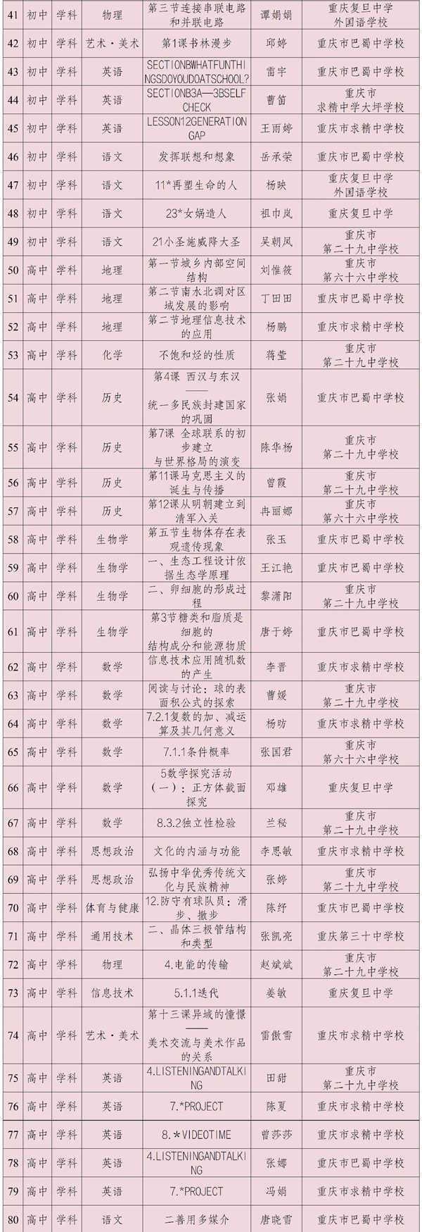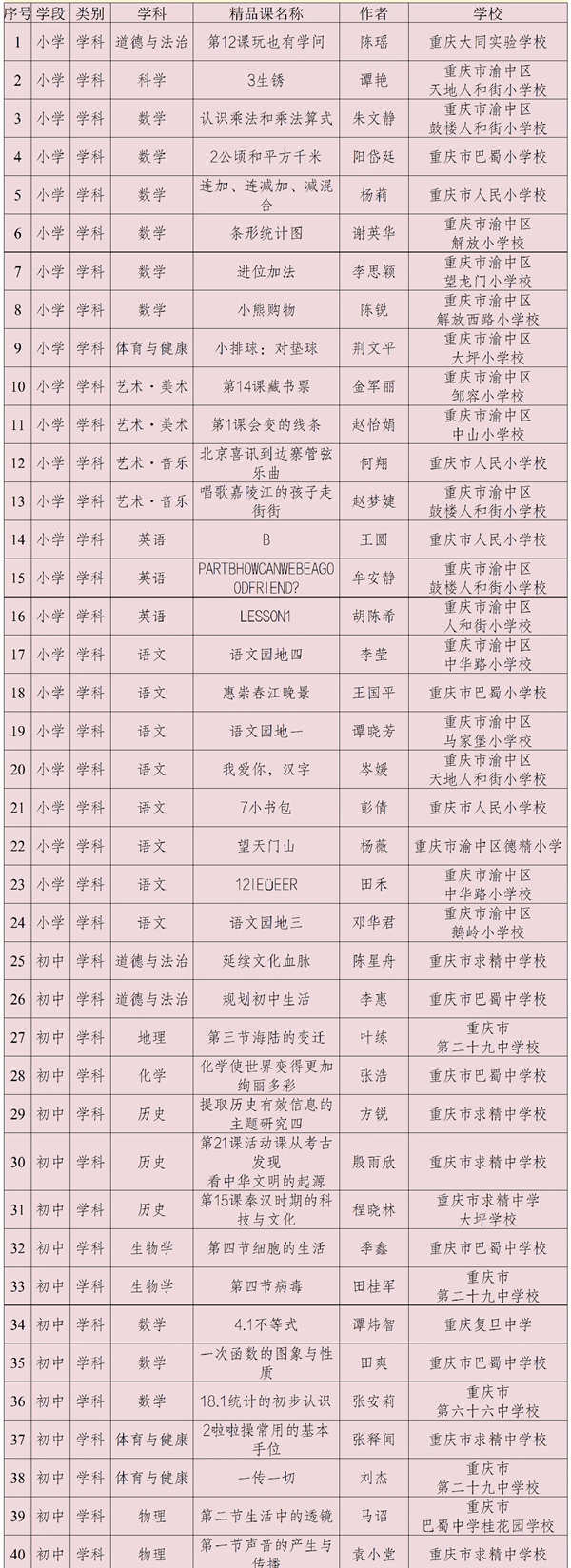 重慶市2024年“基礎教育精品課”遴選工作市級精品課名單(渝中區)。渝中區教委供圖