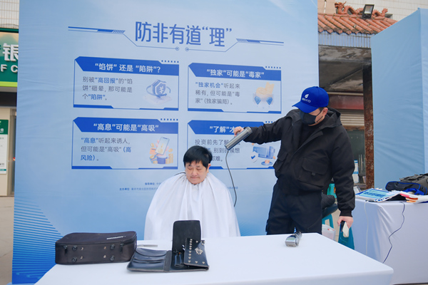 在“防非公益集市”區域,現場設置了防非小課堂、防非小游戲等多個互動環節。群眾通過參與互動游戲活動,不僅學習了防范非法集資知識,還領取了精美小禮品?!斑@個宣傳活動非常好,我們領取了防非宣傳冊,咨詢了非法集資疑問,還體驗了免費理發,在學習知識的同時,也體驗了濃濃的生活味?!眳⑴c活動的一位市民說道。