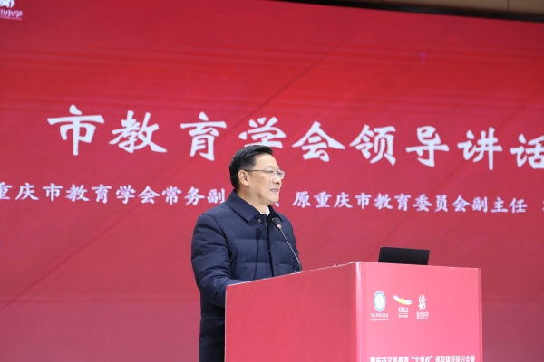 重慶市教育學會常務副會長鄧沁泉講話。張源攝