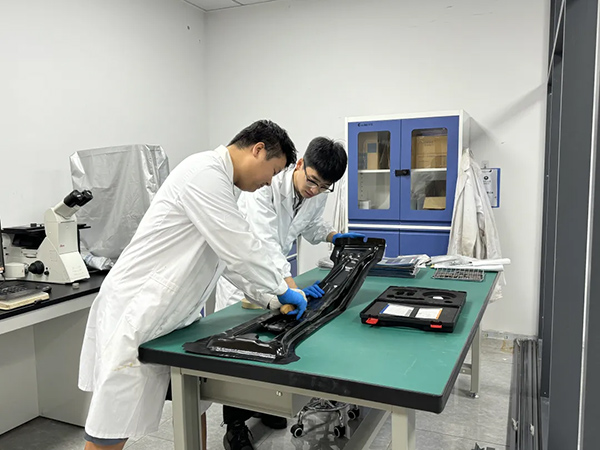 裝備輕量化技術研究所團隊正在進行附著力測試。兩江協同創新區供圖