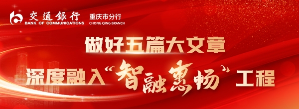 中央金融工作會議提出,做好科技金融、綠色金融、普惠金融、養老金融、數字金融五篇大文章。黨的二十屆三中全會對深化金融體制改革作出重要部署,要求“積極發展科技金融、綠色金融、普惠金融、養老金融、數字金融,加強對重大戰略、重點領域、薄弱環節的優質金融服務”。作為黨領導下的國有大行,交通銀行重慶市分行深入學習貫徹黨的二十屆三中全會精神和中央金融工作會議精神,多點發力做好金融“五篇大文章”,全方位匹配金融資源,深度融入“智融惠暢”工程,助力西部金融中心建設,以自身高質量發展持續為推進中國式現代化注入金融動能。