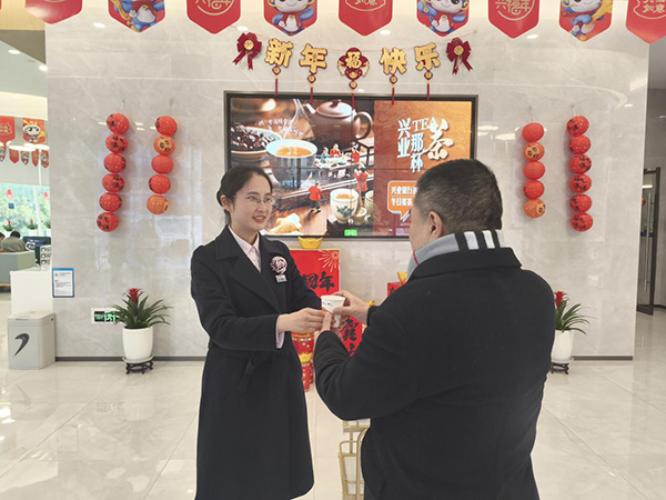 工作人員為前來網點的客戶送上姜茶。興業銀行重慶分行供圖