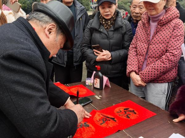 當天,現場還設有各類春節作品展示區,小朋友們的剪紙、繪畫等傳統手工藝作品,吸引了眾多居民駐足觀賞。在寫春聯送福字活動區域,書法愛好者們揮毫潑墨,為居民們書寫春聯和“?!弊?,送去新春的祝福和美好的祝愿。