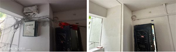 盡管飛線下地工作艱巨且復雜,但經過施工后,塔坪片區的居民紛紛表示了滿意。原本雜亂的電線和通信設施不再橫亙在樓道內,極大提升了居民的居住環境。