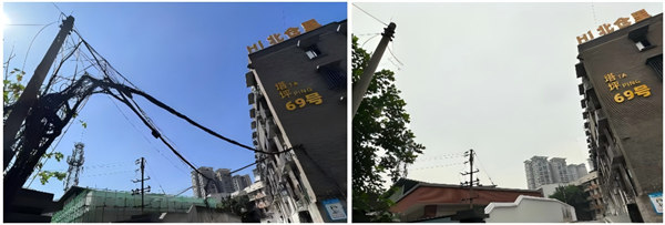 改造前,小區內的電力和通信線路密布,猶如一張無形的“蜘蛛網”橫亙在居民樓之間,嚴重影響了居民的日常生活和小區的整體面貌。為了解決這一問題,相關政府部門決定在該片區啟動飛線下地的專項行動,率先進行試點,探索出適合重慶本地的改造模式。