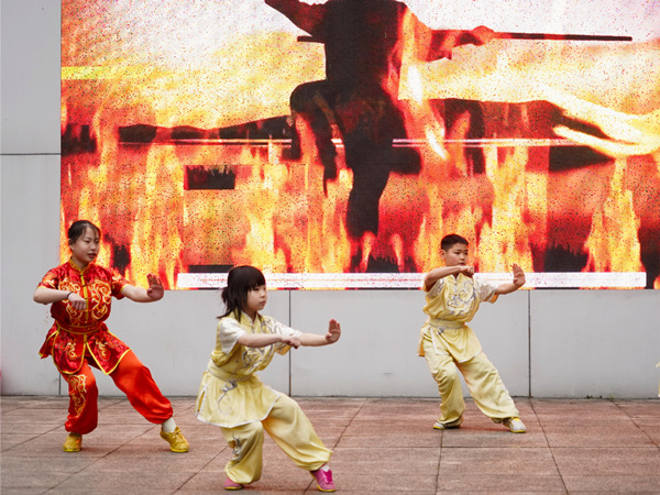 武術鼓樂秀。南坪實驗小學康德校區供圖