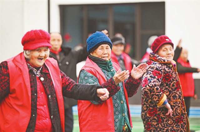 2月17日,澄溪鎮敬老院,老人們在操場上運動。