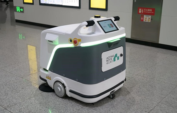 軌道交通10號線T3航站樓站高仙Scrubber 50智能有水清潔機器人。重慶交通開投樞紐集團供圖
