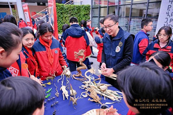 3月6日,巴南育才實驗中學熱鬧非凡,“渝藝同行 志愿強基”——重慶文藝助力基層精神文明建設行動在這里開展。
