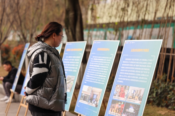 五里店街道轄區居民觀看活動現場展板。江北區委宣傳部供圖
