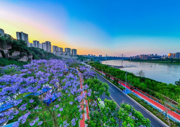 紅藍相間的人行步道,五彩斑斕的沿江欄桿,大濱路仿佛絢麗的彩帶將江邊美景串聯起來,吸引市民來此休閑健身。通過實施生態修復、建設親水步道及打造特色景觀,大濱路顯著提升了江岸線的顏值與氣質。