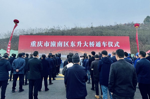 重慶潼南區交通運輸委員會黨委書記、主任李林直介紹,作為潼南“五橫六縱一環”主干路網體系“六縱線”關鍵樞紐,東升大橋通車后,將讓潼榮高速與合安高速形成直連,同時潼南區境內的過江通道也將增至9個,江北新城市民駕車從城區上潼榮高速不需再繞行產業大道,可直接經東升大橋經潼榮高速潼南南互通上至潼榮高速,通行時間可節省約20分鐘。此外,該項目還打通了潼南食品加工園、潼南高新區南區北區東區的區域“經脈”,為成渝地區雙城經濟圈建設注入新動能。