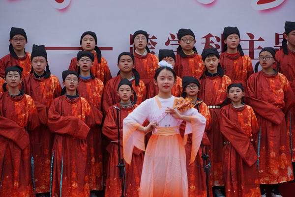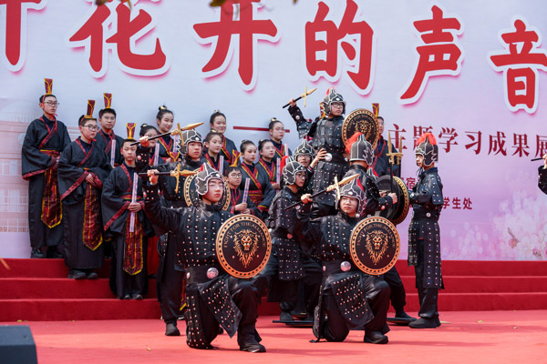 3月20日,重慶一中寄宿學校第十八屆“靜聽花開的聲音”跨學科主題學習項目成果展暨大型詩歌吟唱活動啟幕。本次活動以“昌明國粹,融化新知,愛我家邦”為主題,從夏商周秦漢,到唐宋元明清。師生們以歌舞、武術、對詩、吟唱等方式穿起中華上下五千年歷史文脈。