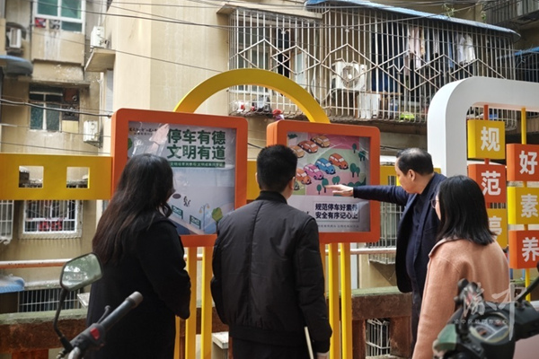 渝中區委宣傳部前往大溪溝街道華福巷社區指導“規范停車”主題治理示范空間建設。渝中區委宣傳部供圖