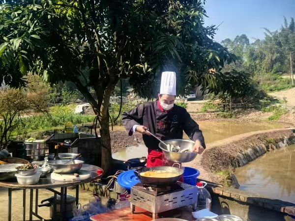 一魚多吃,大廚在田間地頭烹飪。徐雯瑄攝
