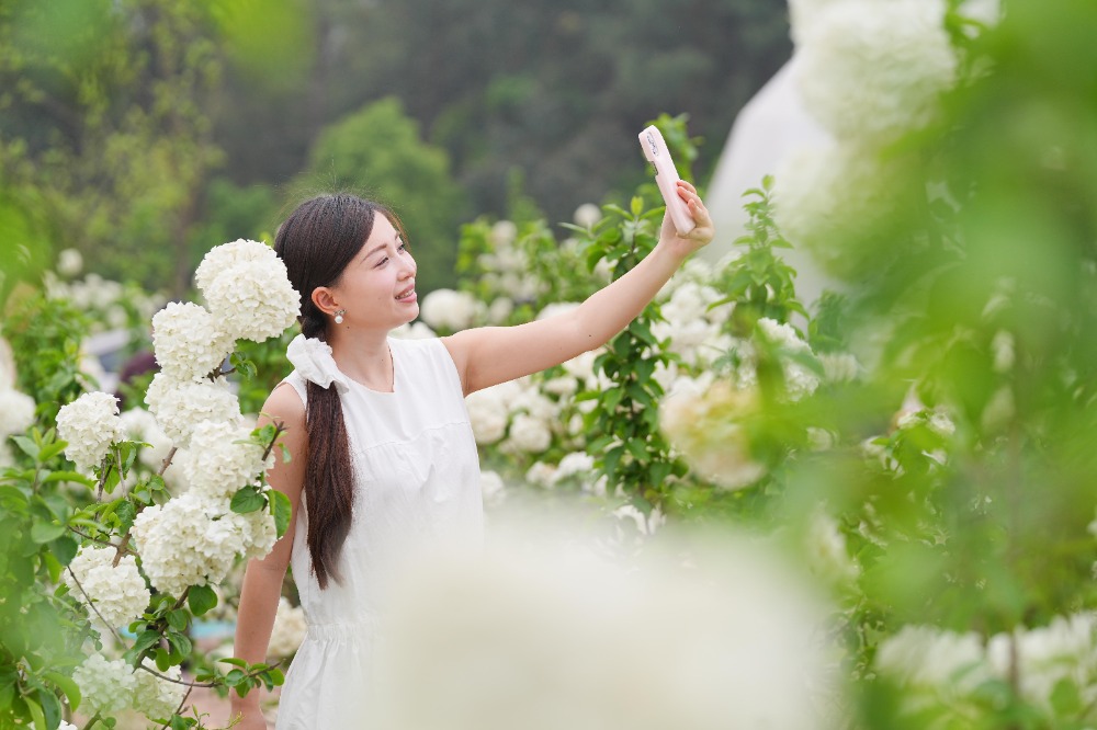 4月6日,北碚區復興街道漫花山田農業公園,游客在此踏青賞花,拍照留念。特約攝影 秦廷富