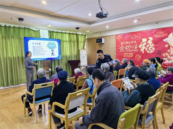 在北碚區,勝利路營業廳愛心翼站攜手區經信委、天生街道黨工委、辦事處、社區民警走進養老服務中心,為老年群體開展“智慧助老,樂享銀齡”志愿服務?;顒蝇F場,志愿者圍繞常見養老騙局、健康保健陷阱等內容進行講解,幫助老年群體提升防范意識?!澳銈冞@么耐心地給我們老年人講養生騙局、養老騙局,我都聽進去了,以后一定不會貪圖小恩小惠落進騙子的圈套?!眳⑴c者楊奶奶表示。