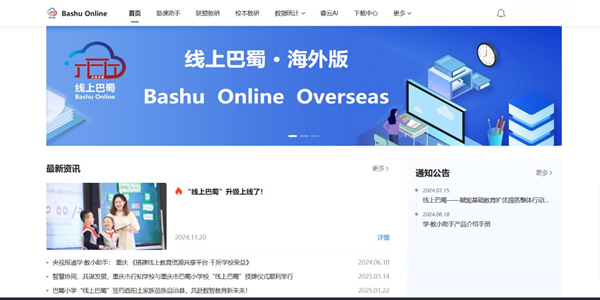 “線上巴蜀”平臺海外版首頁截圖。重慶市巴蜀小學校供圖
