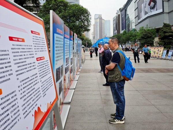 市民駐足閱讀宣傳展板。江北區委宣傳部供圖