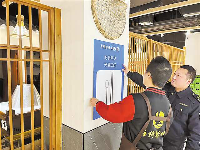 該區推動社會餐飲做到“四有”,即店堂有宣傳、桌上有標識、點餐有提示、剩菜有打包。網絡餐飲做到“五有”,即平臺有宣傳、餐品有描述、點餐有提示、結算有提醒、封簽有標識。集中餐飲做到“六有”,即訂餐協議有承諾、菜品組合有選擇、就餐場所有宣傳、餐飲單位有培訓、服務人員有提醒、剩菜剩飯有打包。該區通過細化標準,將反浪費責任落實到點餐、消費、打包全鏈條之中。