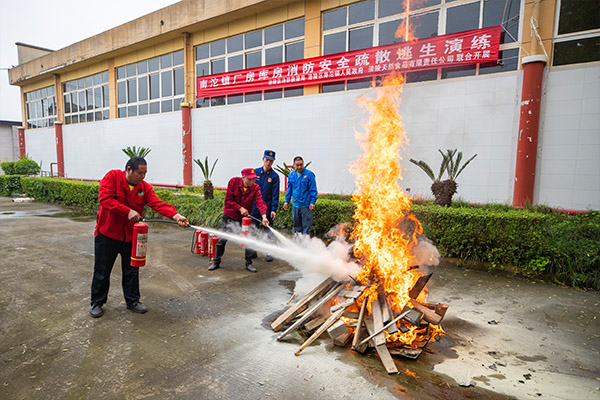 庫房并未真的起火,這是該公司開展的實戰演練。當日,重慶市涪陵區消防救援局聯合南沱鎮人民政府在該公司進行廠房庫房消防宣傳培訓,提高員工消防安全意識,強化抵御火災能力,筑牢廠房庫房消防安全防線。公司全體員工以及南沱鎮部分企業相關負責人共計80余人參加培訓。
