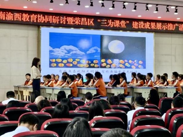 5月6日,川南渝西教育協同研討暨榮昌區“三為課堂”建設成果展示推廣活動在榮昌區安富中心小學舉辦?;顒右浴八仞B導向下的新卓越課堂建設”為主題,通過課例展示、經驗共享、技術賦能,推動川渝教育從“協同”走向“共生”,吸引了川渝兩地教育行政部門領導、教研員、校長及教師代表共200余人參與。