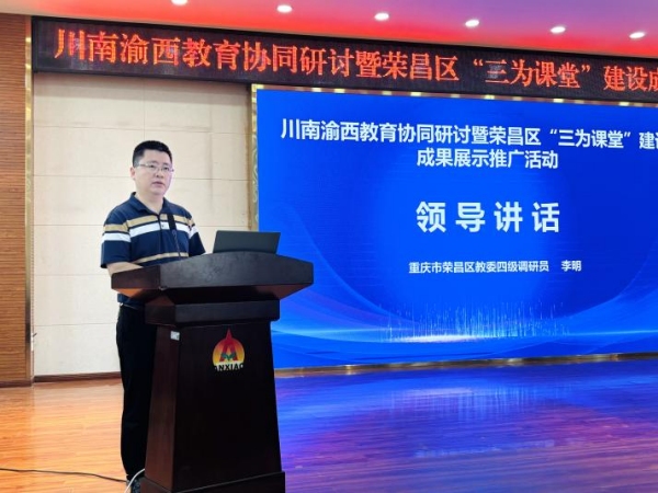 榮昌區教育委員會調研員李明講話。主辦方供圖