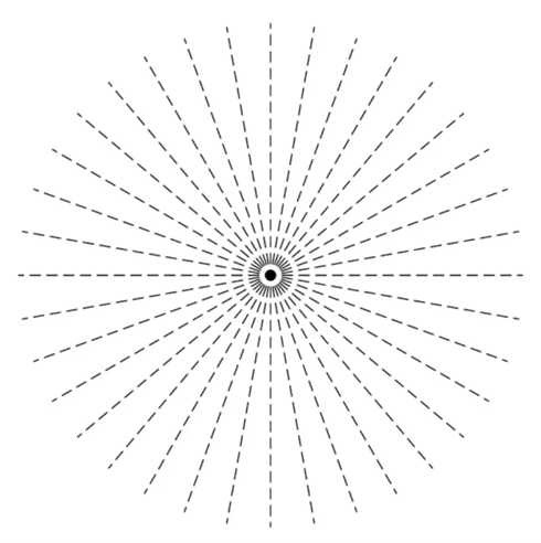取下眼鏡,將手機移至距離眼睛大約40厘米的位置(約一臂距離),用手遮住一只眼,單眼凝視上方散光表10秒,如果各線條深淺粗細一致,則沒有散光。反之可能眼睛有散光。