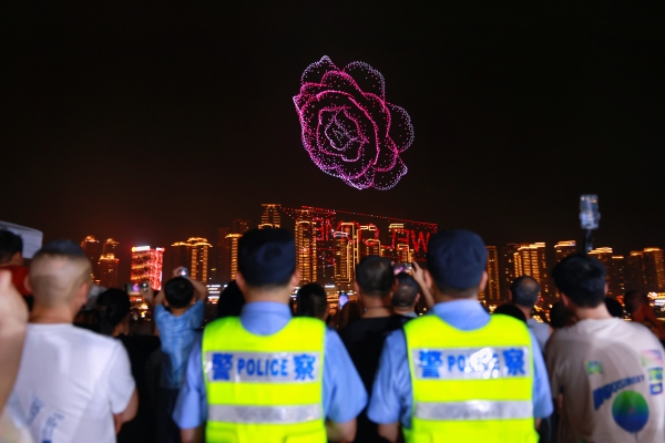 節日期間,江北城派出所執勤民警保障節日無人機表演。江北區委宣傳部供圖