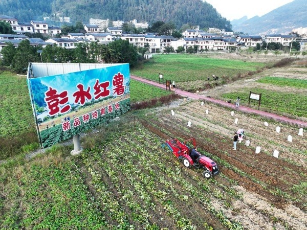 中共彭水自治縣農業農村工委書記、縣農業農村委主任、縣鄉村振興局局長李育奎介紹,彭水縣正加速融入成渝現代高效特色農業帶,通過“村村聯合”“跨鄉鎮土地整合”等模式培育龍頭企業,力爭以“一顆小紅薯”托起鄉村振興大產業,不僅讓10萬薯農在家門口端上“生態金飯碗”,還為鄉村振興注入了新的活力,走出一條山區民族地區強縣富民現代化新路徑。(蔣海濤)