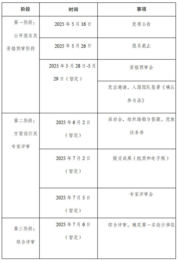 注:1、以上時間均以北京時間為準,主辦單位保留調整日程安排的權利。具體時間以最終發布的方案征集任務書為準。