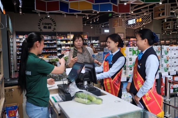 江津支行張富清服務隊走進雙福農貿市場開展金融服務活動。建行重慶市分行供圖