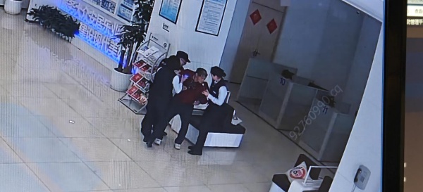 長壽支行“張富清金融服務隊”全力救助患病老年客戶,最終化險為夷(監控視頻)。建行重慶市分行供圖