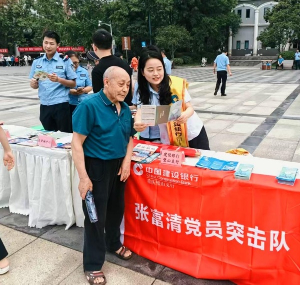 璧山支行張富清黨員突擊隊走進社區開展金融知識宣講。建行重慶市分行供圖