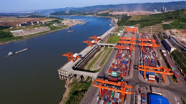 重慶農商行積極支持重慶內陸開放國際合作引領區建設,圖為該行支持的重慶果園港一角。重慶農商行供圖