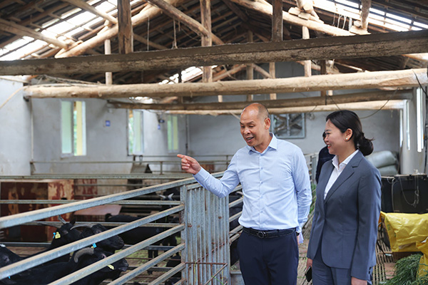銀行工作人員走訪企業種羊養殖基地。向詩佳攝